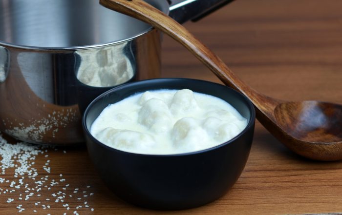 In a deep pan put liquid milk or water, bay leaf and make hot then add the sesame ball and boil it. After boil the sesame boll put the sugar and mixed well. Cook more 05 minutes on slow hit then serve.