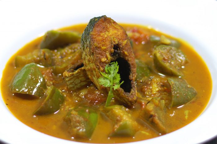 # After eggplant become soft add pan fried Hilsha fish on the curry then cover again and keep it on low heat for about 05 minuets .