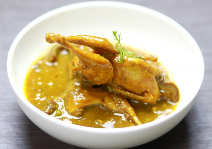 Marinate the quail with salt, turmeric powder, chili powder then keep it 30 min. for rest . In a medium heated pan shallow fry the marinated quail . After quail become brown remove from the pan and put in a bowl .